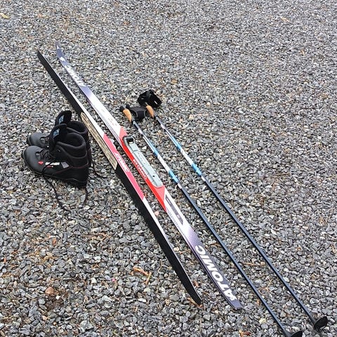 Perinteisen tyylin hiihtosetti (sukset, sauvat, monot, siteet)