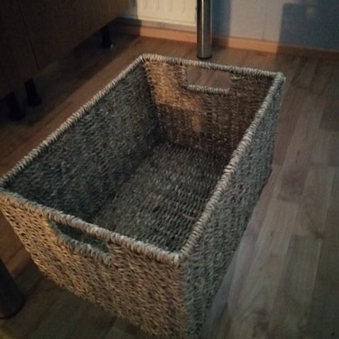 Myydään kuvan puukori. Mitat: K. 19cm, L. 35cm ja S. 25,5cm. Nouto.