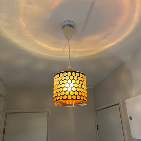Hyväkuntoinen valaisin, runko metallia ja lasia, kupu lasia