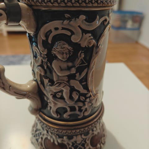 Myydään Beer kahvallinen tuoppi, korkeus noin 15 cm. Lasin pintaan maalattu teksti ja kuviointi on osittain lähtenyt, siksi käsinpesua suositellaan. Seissyt nyt kaapissa. Myydään muuton takia. Savuton ja eläintalous (=löytyy mahdollisesti eläimen karvoja). MMM.