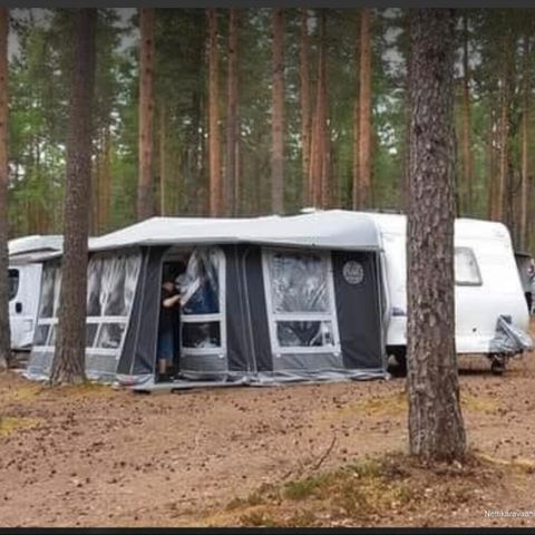 Asuntovaunun etuteltta, jossa suuri etuikkuna ja sivuikkunat. Teltta tarjoaa lisätilaa asuntovaunun eteen . Koko 2x3m. Meillä teltta ollut vain talvitelttana. Kunto on kohtalainen, mutta toimii edelleen. Muutama pieni reikä, niissä teippi päällä ja ei näkyvillä paikoilla. Väriyhdistelmässä tummansininen, harmaa ja vaalea yläosa.