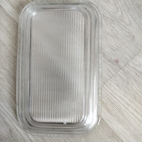 Paljon käytetty mutta ehjä lasinen uunivuoka.
