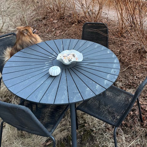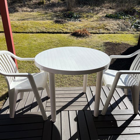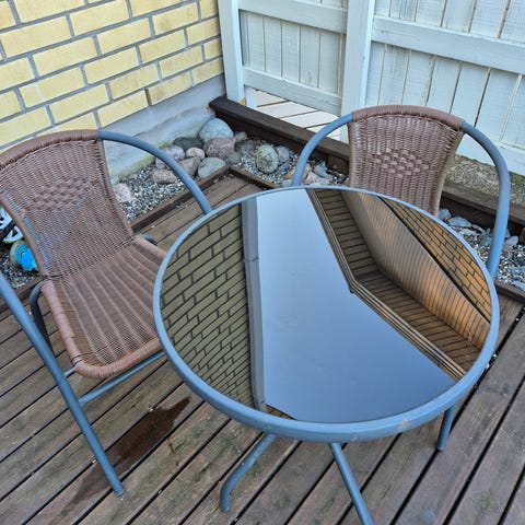 Parvekekalustesetti pyöreä puinen pöytä ja kaksi tuolia, Tarjoa!!