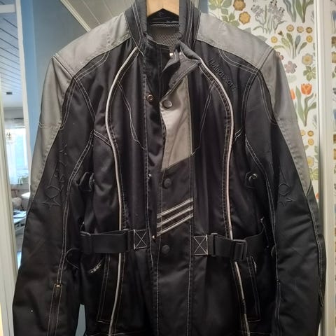 Halvarssons Impact Cordura ajopuku, johon kuuluu ajotakki ja ajohousut. Materiaalina kulutusta kestävä cordura-kangas. Väri musta-harmaa, heijastavia yksityiskohtia ja säädettävät kiristysremmit vyötäröllä. Sopii moottoripyörä- tai muun moottoriajoneuvon ajokäyttöön. Koko housuissa M, takki 42.