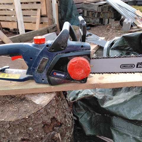 Hyvin toimiva Husqvarna sähköinen ketjusaha. Ei polttoaineen käryä eikä melua. Hyvä klapeja tehdessä.