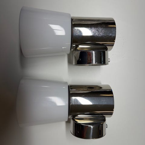 Lidl TCM kylpyhuonevalaisin, seinään asennettava malli. Valaisimessa on krominvärinen runko ja mattapintainen valkoinen lasivarjostin. Sopii peilin yläpuolelle tai muuhun kylpyhuonekäyttöön. Mukana alkuperäinen pakkaus ja käyttöohjeet.