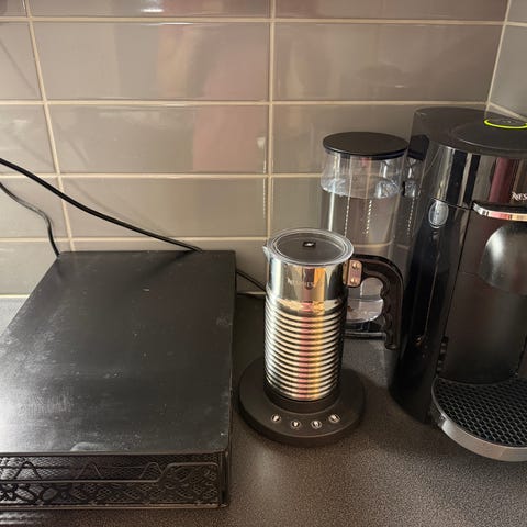 Nespresso's VertuoPlus one button espresso maker! Love this machine as it makes delicious coffees, but need to sell due to moving.