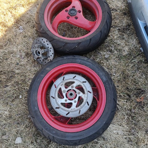 Yhden kesän alla olleet Michelin bobberit 130/90/10 Piaggio apen.Maksoi uutena 50€ kpl. Mielellään nouto