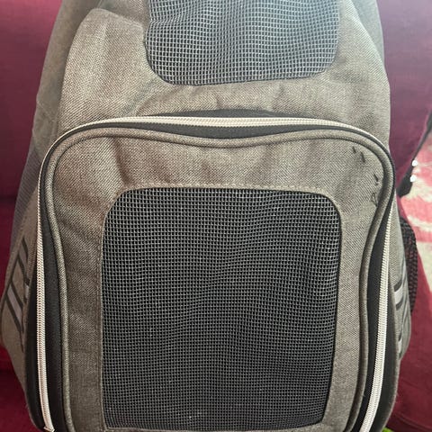 Erinomaisessa kunnossa oleva kantoreppu pienen lemmikin kantamiseen. Pohjan mitat: 25X30cm ja korkeus 35cm. Repussa hyvät ilma-aukot ja lukittavat veroketjut lisäövät turvallisuutta.