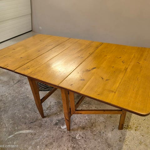Antiikkinen klaffipöytä, joka on ollut ruokapöytänä