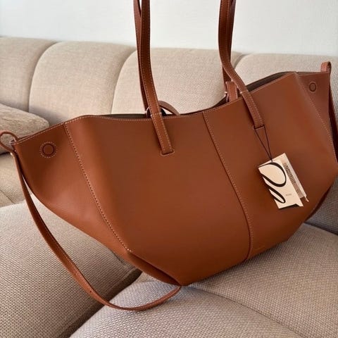 Myydään musta Polenen nahkalaukku. Mitat 20.5 x 17 x 9 cm