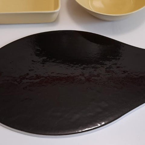 Arabia Kala talouslevy, leikkuulauta. Koko 32 x 19 cm. Pyrstössä leima. Design Kaarina Aho/ Raija Uosikkinen. Kunto erinomainen, tarkkaan katsoen yksittäinen pieni naarmu, muutoin lasite kirkas.