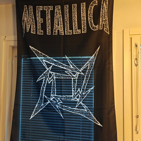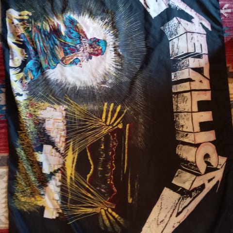 Vuodelta 1994 Metallican seinälippu. Ollut nastoilla seinässä niin kulmissa pienet reiät siitä jäänyt.Kunto muuten kuin uusi. Koko 78 cm x 108 cm