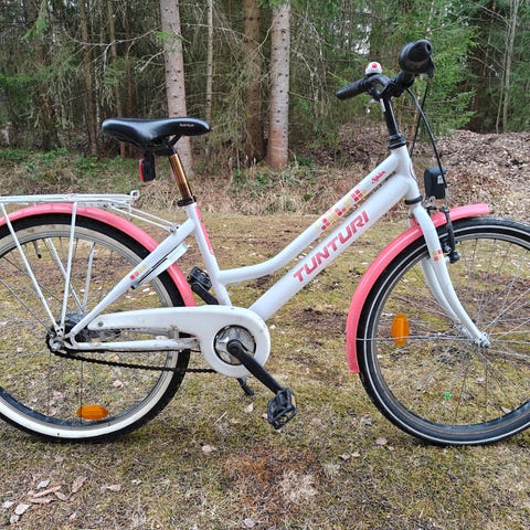 Hyväkuntoinen tyttöjen 24" Tunturi spin 7 vaihteinen pyörä. Ollut tytöllä koulumatka ajossa ja nyt jäänyt pieneksi. Pyörästä löytyy lisävarusteena etuvalo ja soittokello.