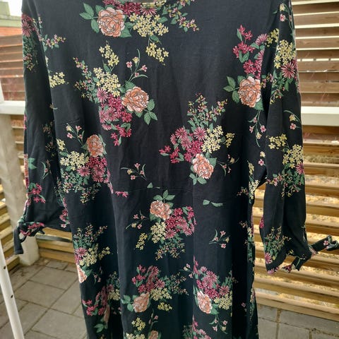 Dorothy Perkins arkimekko naisille, koko 46. Mekko on musta, jossa on yläosassa valkoisia sydämiä, ja yksivärinen musta alaosa. Materiaali joustaa jonkin verran. Hieman nukkaa kainaloiden kohdalla, mutta saa nypynpoistajalla kyllä pois. Mekossa on puolipitkät hihat ja pieni kaulus. Sopii arkipukeutumiseen ja siistimpään käyttöön. Kainalosta kainaloon 59 cm ja olalta helmaan 99 cm.