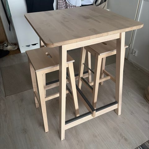 Baaripöytä ja 3 baarituolia 50e