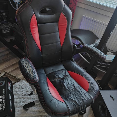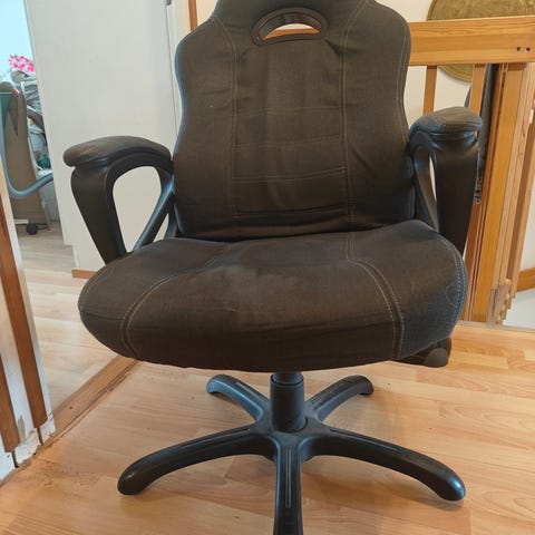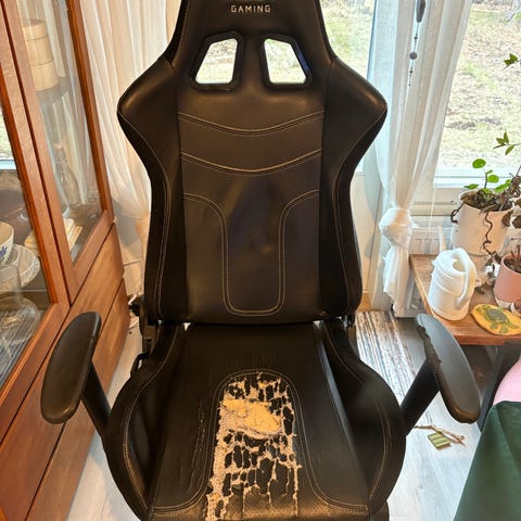Kohtalaisessa kunnossa oleva DxRacerin kankainen pelituoli pikkurahalla. Kaasujousi ja muut ominaisuudet toimii ongelmitta. Mukaan alaselkä- sekä niskatuki jossa jo kulumaa. Renkaat vaatii kyllä vaihtoa sekä käsinojissa jonkin verran halkeemia