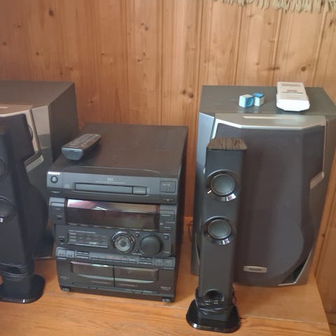 Kenwood stereot räkillä ja kaiuttimet.