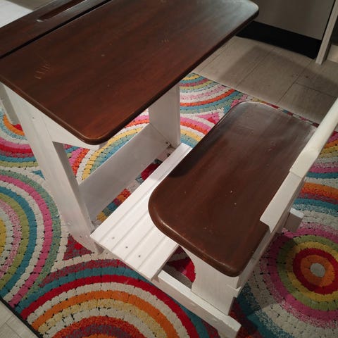 Pulpetti kahdelle istujalle. Lastenhuoneessa ollut, käytön jälkeä