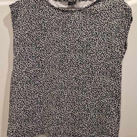 Pari kertaa pidetty Nanso Silmu naisten paita. Koko 42. Materiaali 100 % viskoosia. Paidassa on lyhyet hihat ja V-pääntie. Kuosi on mustavalkoinen, kirjavakuvioinen. Sopii arkipukeutumiseen ja kerrospukeutumiseen. Pääntiessä yksi lanka löysällä. (Ks. kuva 4.) Ei lähde purkautumaan. Muuten hyvässä kunnossa.