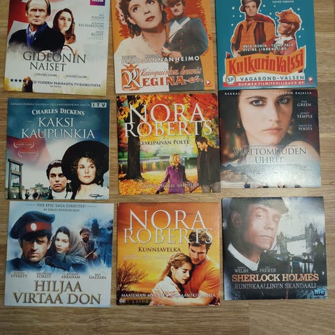 Sekalainen DVD-elokuvapaketti, jossa on noin 11 kappaletta eri elokuvia ja sarjoja. Kotelot ovat tavallisia DVD-muovikoteloita. Sopii DVD-soittimella katsottavaksi elokuvakokoelman täydentämiseen tai yhteiseen katseluun. Tarkemmat nimet ja sisällöt näkyvät kuvissa.
