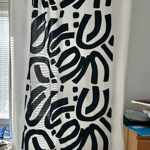 Uusi ( 1 kpl) hieno, graafinen Vallilan sivuverho 250 x 140cm. Ei avattu.