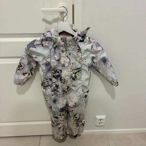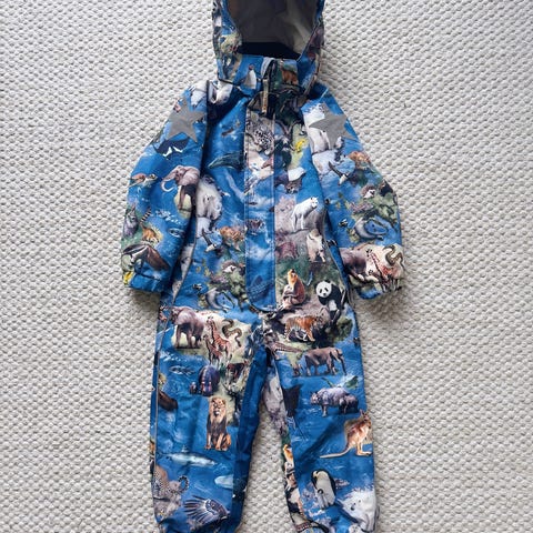 Yhden syyskauden käytetty hyväkuntoinen välikausihaalari kokoa 98. Vähän jäänyt tummentumaa polviin ja peppuun, joka näkyy kuvissa. Lemmikittömästä taloudesta.