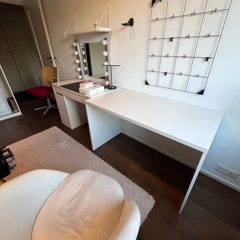 Valkoinen työpöytä esim. tietokoneille