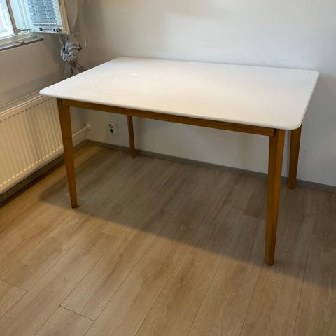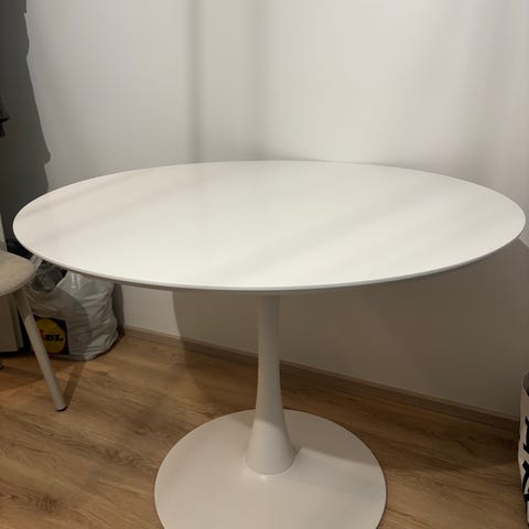 Uusi muutama viikko sitten ostettu ruokapöytä kahdelle. Omat suunnitelmat meni uusiksi niin pöytä on nyt tarpeeton. Mukaan saa tuollaisen yhden Ikean tuolin jos haluaa.