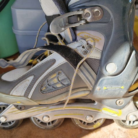 CCM SL 160 rullaluistimet rullaluisteluun. Koko EUR 45. Väri harmaa-musta, yksityiskohtia punaisella. Kengässä tukeva nilkkatuki, solki, nauhat ja tarrakiinnitys. Runko on metallinen ja siinä on neljä pyörää per luistin sekä takajarru. Päällinen ja sisäosa ovat tekstiili- ja synteettistä materiaalia (all man made materials). Soveltuu aikuisten rullaluisteluun kuivilla ja tasaisilla alustoilla.