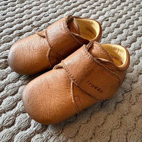 Myydään hyvässä kunnossa olevat Froddon nahkaiset ensikengät ja Slipstopin tossut. Tossuissa jonkin verran tummentumaa kankaassa. Molempia käytetty noin koossa 18-20 1-vuotiaana. Yhteishinta 25€.
