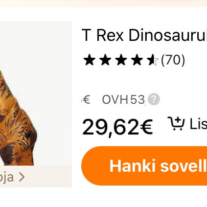 Myyjä ei ole vielä aktivoinut ToriDiiliä. ToriDiili on Torin uusi maksu- ja kuljetuspalvelu, jolla kotiutat torilöydöt nopeasti ja turvallisesti. Lue lisää