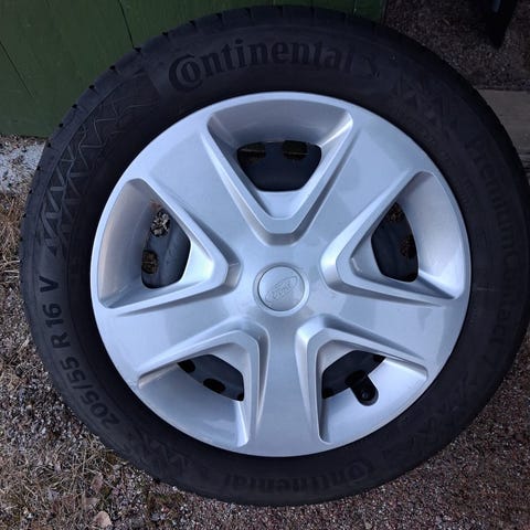 Kaksi ehjää rengasta joilla ajaa viellä hetken, kaksi rengasta rikki. Ajettu asfaltin kuoppaan jossa renkaat puhjennut kyljestä vanteissa pieni jälki