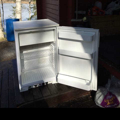 Takuuhuollettu pienellä pakastelokerolla oleva kaasujääkaappi