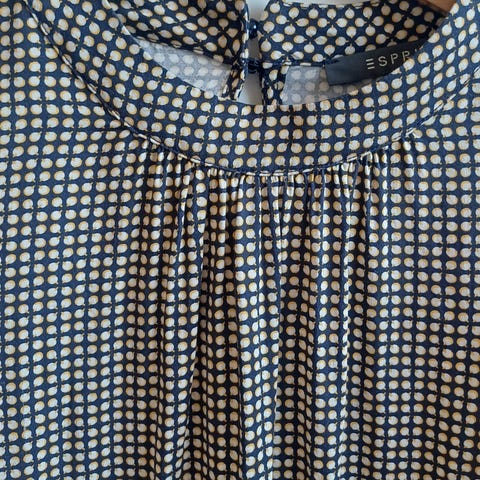 Esprit naisten paita, koko 38. Materiaali viskoosia. Paita on kirjavan kukkakuvioinen, pohjaväri vaalea. Mallissa on pitkät hihat ja edessä napit kaula-aukosta rintaan asti. Pitkät hihat,joissa kapea kalvosin,suljetaan napilla. Mahdollista myös rullata hihaa lyhyemmäksi ja kiinnittää se tempulla. Kainalo-kainalo mitta:47 cm, pituus:74 cm. Myös nouto mahdollinen Nummelasta tai Veikkolasta.