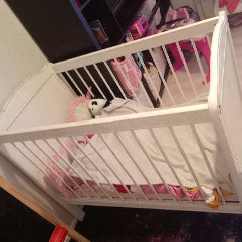 Siistissä kunnossa, enimmäkseen koristeena ollut kun lapsi ei tykännyt nukkua yksin. Patjan päällä käytetty suojusta eli patjassa ei ole mitään tahroja. Meillä ei asu kotieläimiä.