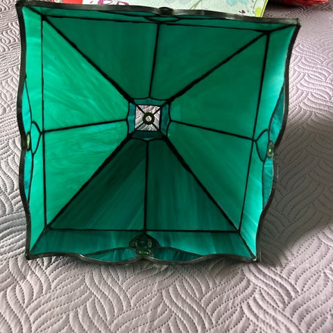varjostimissa erivärisiä lasipaloja, jotka luovat koristeellisen ja tunnelmallisen valaistuksen