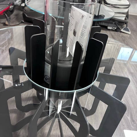 Lohikäärmejalustalla lasilevypöytä , korkeus 61cm. Lasipöydän halkaisija n.58cm. Keräilyesine . Vain nouto.