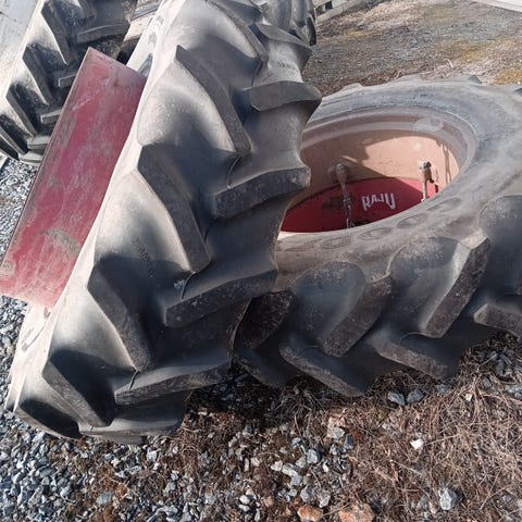 Kuvan paripyörät / levikepyörät traktorin. Barum merkkiset renkaat kulutuspintaa vielä reilusti, mutta murtumaa havaittavissa. Molemmat saman laisia / kuntoisia. Ilmat pysyy sisällä. Uudemalla kiinnityksellä. Kiinnitys menee aina kohdalleen kun rengas on paikoillaan. kaikki kiinnitys ketjut löytyy 8kpl. Tästä valmis paketti muuta kuin pyörittää paikoilleen. Kohta alkaa kevät työt.