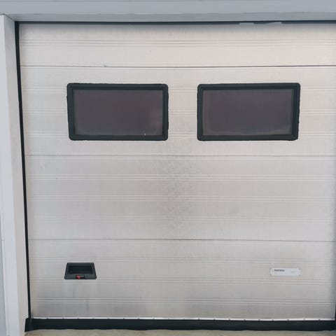 Kaksi noin 4.13m x 1.83m mitoilla olevaametallirunkoista hallin ovea. Osa laseista ja vanerista rikki. Ovat entiset Esson huoltohallin ovet, eli näiden ulottuvilla on puheltu varmasti hyvinkin tuuhevia tarkastellen ikkunoista pikkukylän maailmanmenoa.