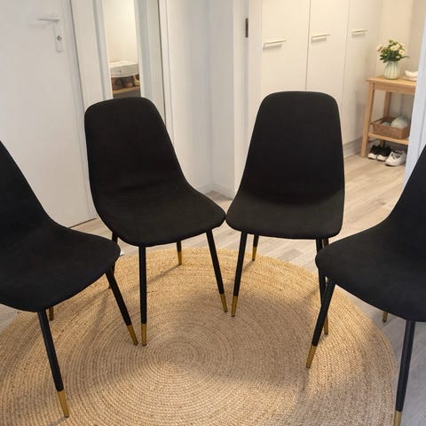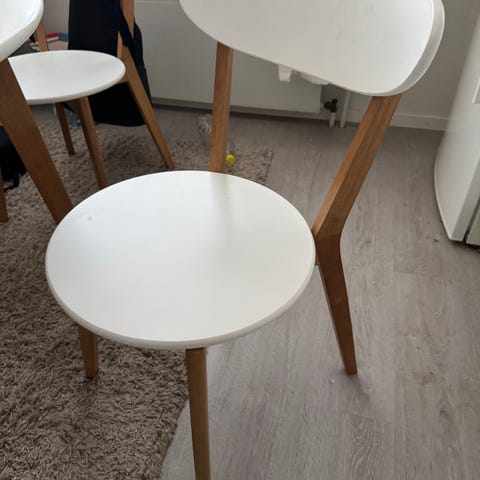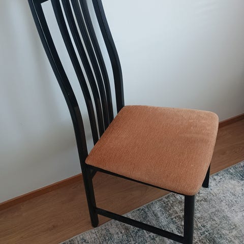 Hyvät tuolit uusien alta pois. Pientä käytön jälkeä kankaassa, Kostealla liinalla tai huonekalupesuaineella pyyhkimällä varmaan saa siistiin kuntoon. Istuinkorkeus 46, istuinsyvyys 40 ja kokonaiskorkeus 86.5. Mukava istuinasento! Kaikki 3 tuolia 25€ tai 10€/kpl. Voi noutaa myös Söderkullan Fynda-kirppikseltä.