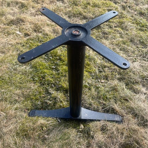 Metallinen pöydänjalka, jossa pyöreä jalusta ja suora putkimainen runko. Soveltuu esimerkiksi ravintola- tai kahvilapöytien rungoksi tai muuhun pöytärakenteluun. Pöydänjalka tarjoaa tukevan alustan pöytälevylle ja on suunniteltu käytettäväksi sisätiloissa. Pöydän jalkoja löytyy 10-15 kpl. Tarjoa hintaa..