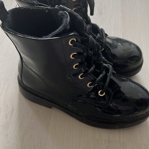Lasten nilkkurit kengät, koko 34. Väri vaaleanpunainen glitter. Nauhakiinnitys edessä ja vetoketju sivussa helpottamassa pukemista. Pohja musta ja hieman korotettu. Sopivat arkeen ja vapaa-aikaan.