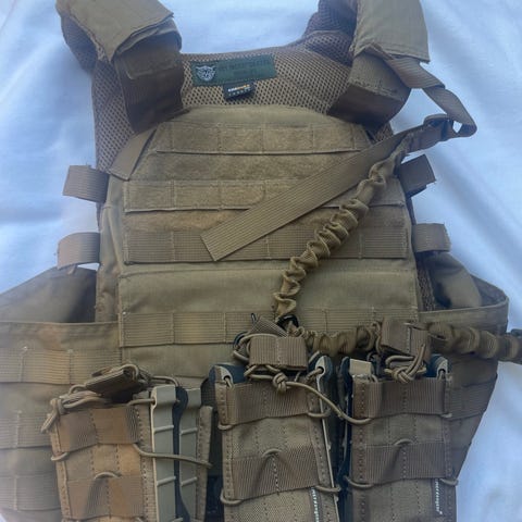 Taktinen plate carrier -tyyppinen taisteluliivi Multicam värissä. Sopii airsoftiin, harjoitteluun, reserviläiskäyttöön tai varustekokonaisuuden rakentamiseen.