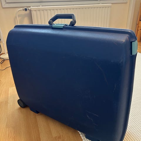 Samsonite matkalaukku jäänyt ylimääräiseksi. Kovakantinen laukku on valmistettu muovista ja siinä on pyörät sekä vetokahva kuljettamista varten. Laukun sisällä on kiristysremmit, jotka auttavat pitämään sisällön paikoillaan. Maailmaa jonkin verran jo tällä kierretty, mutta tuli vaihdettua 4 pyöräiseen malliin ja tämä jäi varastoon pölyttymään.
