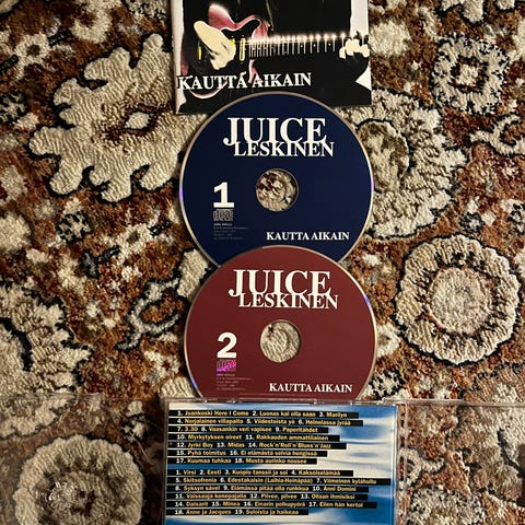 Juice Leskinen Kautta aikain CD-tuplalevy. Kokoelma-albumi, jossa on kaksi CD-levyä samassa kotelossa. Takakannessa on luettelo kappaleista. Fyysinen äänite CD-muodossa musiikin kuunteluun CD-soittimella tai yhteensopivalla laitteella.