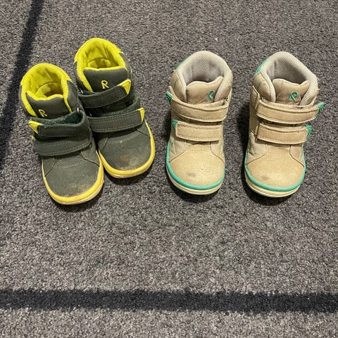 Reima lasten kengät, koko 22. Unisex-malliset kengät, joissa ruskea päällinen ja kaksinkertaiset tarrakiinnitykset. Päällinen yhdistää tekstiiliä ja synteettistä materiaalia, sisäosa on pehmustettu vaalealla tekstiilivuorella. Pohja on kumimainen ja kantapäässä on lenkki helpottamassa pukemista. Soveltuvat arki- ja ulkoilukäyttöön lapsille, jotka käyttävät kengänkokoa 22.