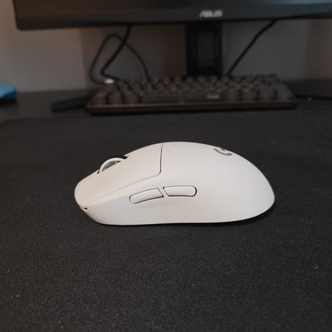 Tästä myyntiin vähällä käytöllä ollut Logitech G Pro X Superlight langaton pelihiiri. . Sivussa on kaksi peukalopainiketta ja yläosassa vasen ja oikea painike sekä rulla.