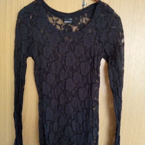 Mangon hyvässä kunnossa oleva ruskea pitsitoppi, jossa säädettävät olkaimet. Materiaali: muuten 100% puuvillaa, paitsi pitsi ei. "Timantti" koristenappi edessä.