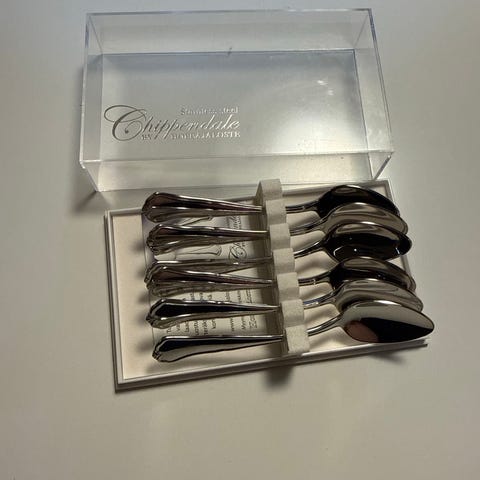 Chippendalen ruostumattomasta teräksestä tehdyt aterimet. Settiin kuuluu yhteensä 24kpl aterimia sekä säilytyslaatikko.